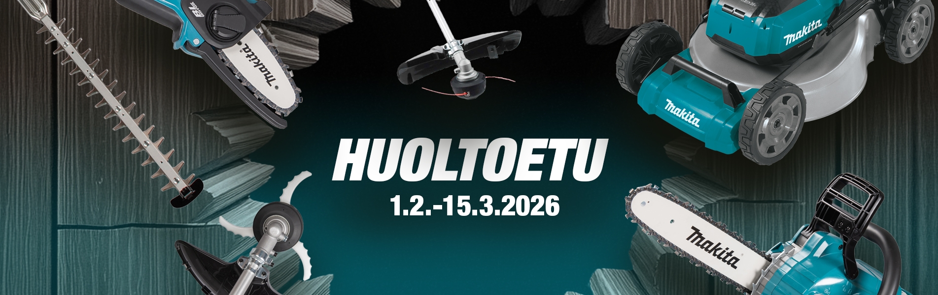 Alennus koskee puutarhakoneita ja huoltotöitä Makitan huoltoehtojen mukaisesti. Huoltoedun puutarhakoneet esim. ruohonleikkurit, trimmerit, raivaussahat, pensasleikkurit, moottorisahat, ketjusahat ja lehtipuhaltimet. Saat aina korjausarvion, ja osien vaihdosta sovitaan kanssasi ennen työn aloittamista. Huollon yhteydessä tarkistetaan tarvittaessa myös terät, siimat ja muut kuluvat osat.