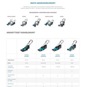 Makitan ruohonleikkureiden vertailutaulukon avulla pystyt helposti vertailemaan eri leikkureiden ominaisuuksia. Ruohonleikkurivertailussa on mukana 18V ja 36V akkukäyttöiset koneet. Vertailutaulukon avulla löydät vaivattomasti itsellesi sopivan leikkurin.