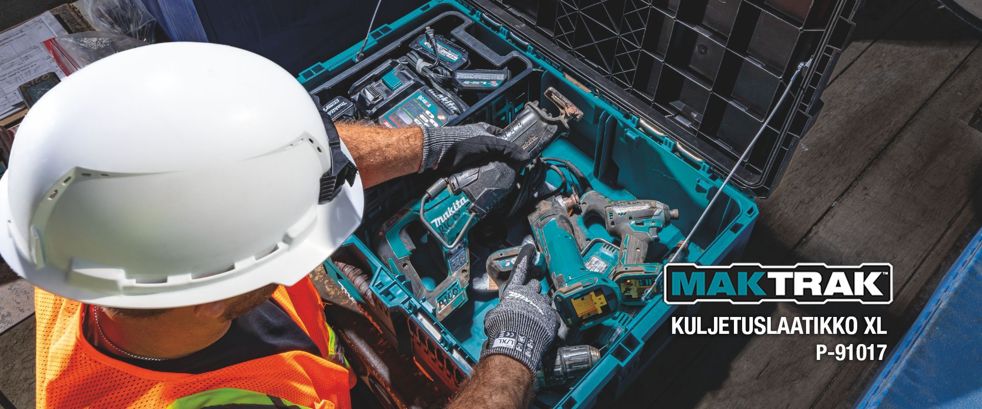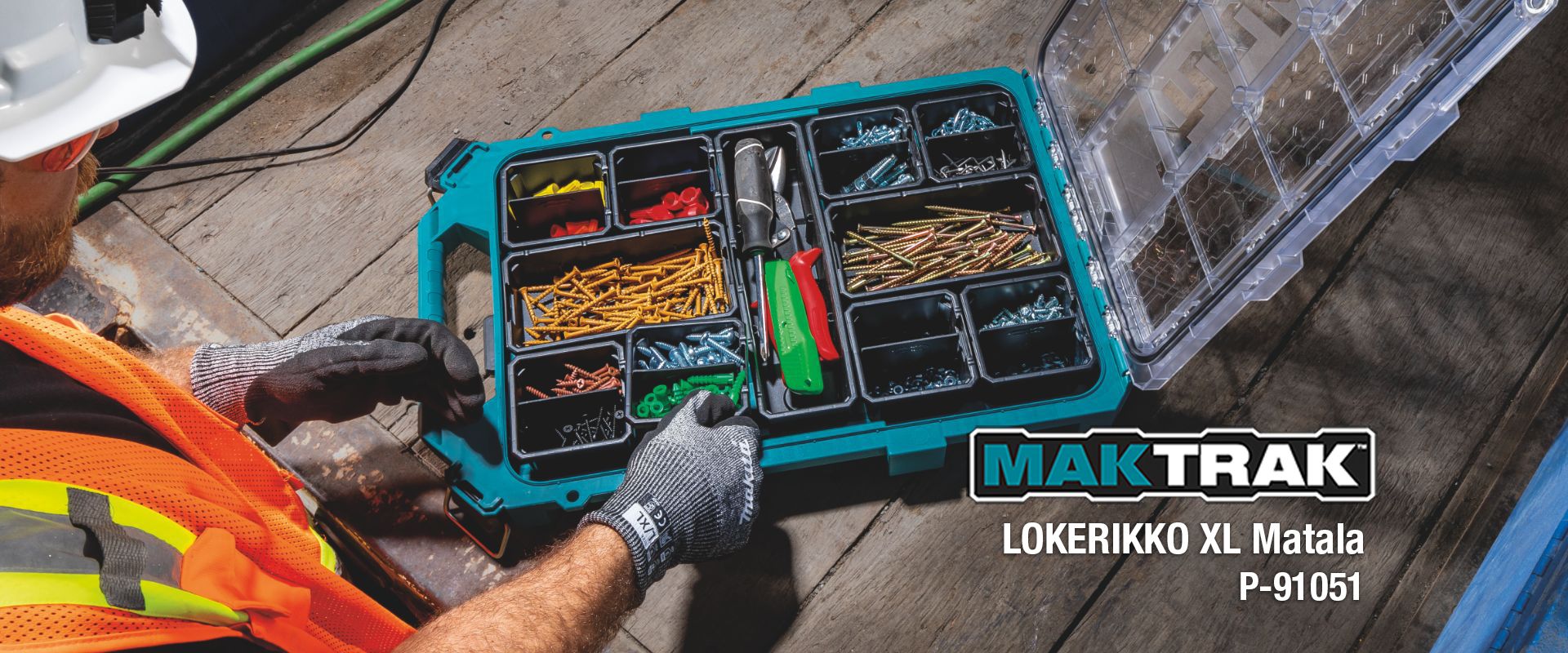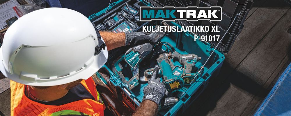 Makita MAKTRAK™ on uuden sukupolven modulaarinen säilytysratkaisu työkalujen, tarvikkeiden ja laitteiden kuljettamiseen, käyttöön, säilyttämiseen ja järjestämiseen työmaalla. MAKTRAKin ainutlaatuinen Trak Mount Lid -järjestelmä yhdellä kädellä avattavalla salpakiinnityksellä mahdollistaa helpon pinottavuuden molemmista suunnista. Lukittuvat salvat yhdessä kannen ja laatikon integroidun rakenteen kanssa tarjoavat erinomaisen suojan sääolosuhteita vastaan. Katso video ja tutustu esitteeseen