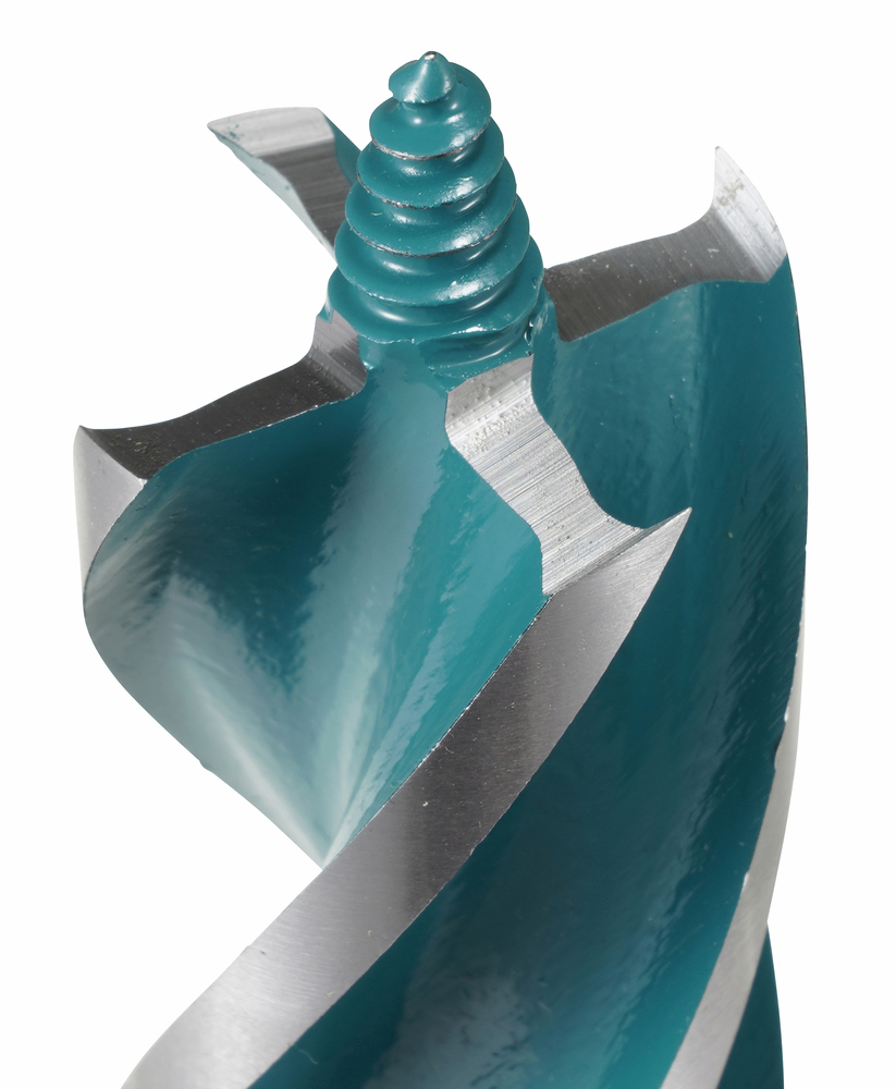 Terän päässä olevan keskitysruuvin ansiosta terää ei tarvitse juurikaan painaa poratessa.