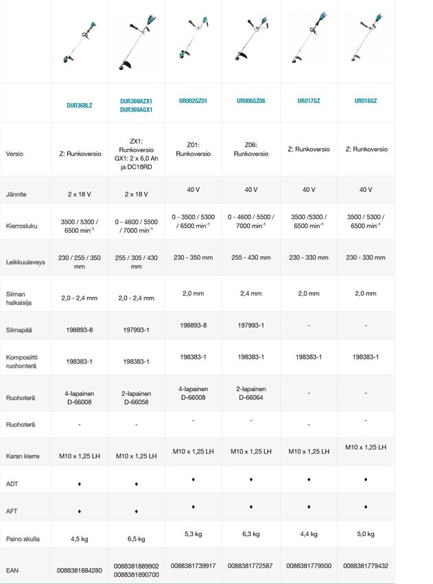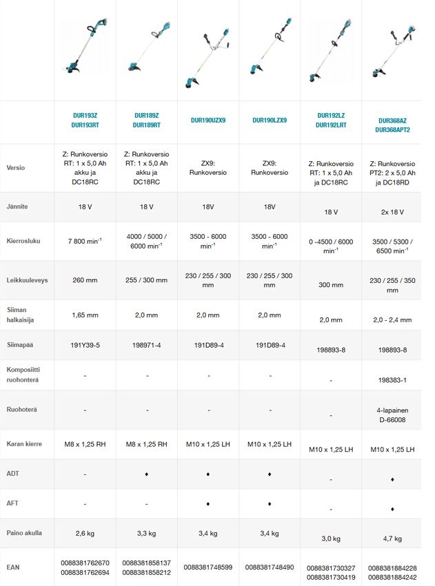 MAKITA RUOHOTRIMMERIT JA RUOHORAIVURIT