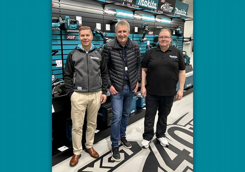 Yhteiskuvassa Makita Oy:n Country Manager, Sales Tommi Lindgren, Stark Suomi Oy:n Senior Category Manager Pasi Nylander sekä Makitan Sales Manager Timo Arasalo.